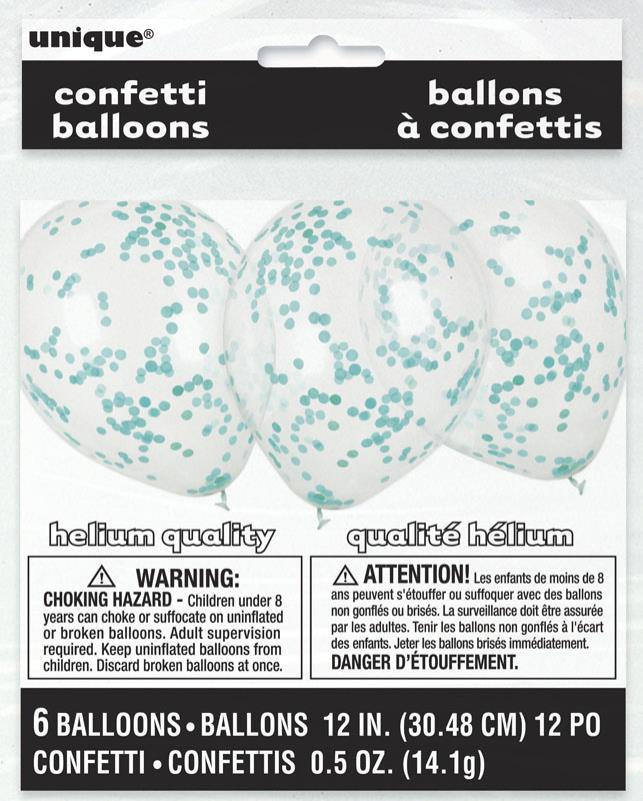 Balões de látex transparentes com confettis de papel redondos. Embalagem de 6 unidades, vendidos sem hélio,