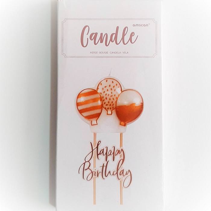 Kit de vela em rose gold com a inscrição happy Birthday. Altura: 14.5cm,