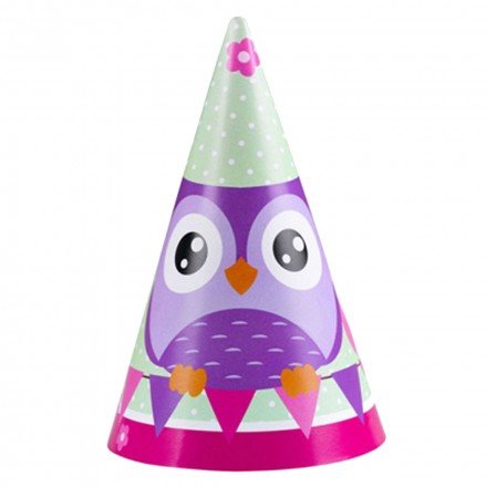 Conjunto de 8 cones de festa temáticos com elástico. Dimensões aproximadas 15.2 cm x 10.5 cm.,