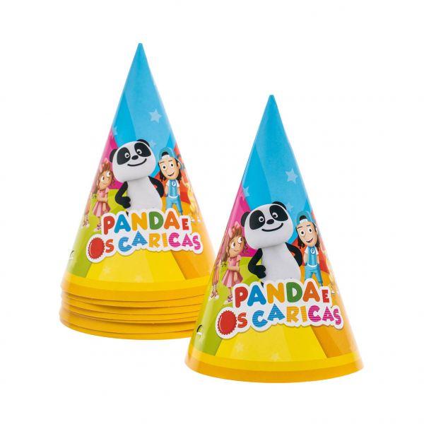 Conjunto de 8 cones de festa temáticos com elástico. Dimensões aproximadas 15.2 cm x 10.5 cm.,