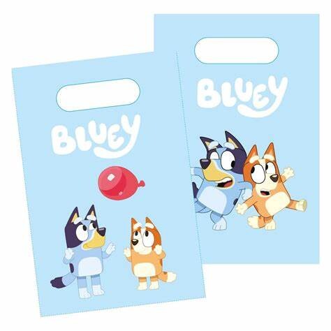 Sacos para brindes bluey, ofertas e pequenos presentes de plástico. Conjunto de 8 Unidades de 20cm x 10cm (AxC)