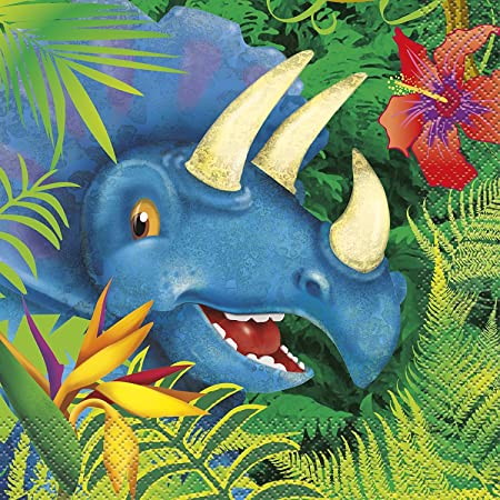 Guardanapos Dinossauros. Embalagem de 16 unidades de papel.,