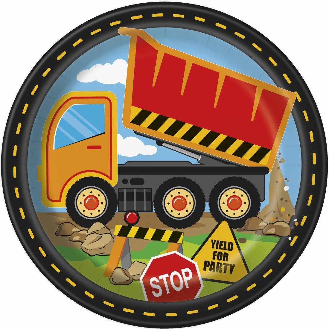 Conjunto de 8 pratos de 23cm em papel ecológico sem plásticos do tema construção!,