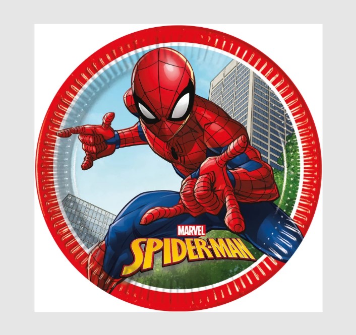 Conjunto de 8 Pratos Homem Aranha de 23cm em papel. ,