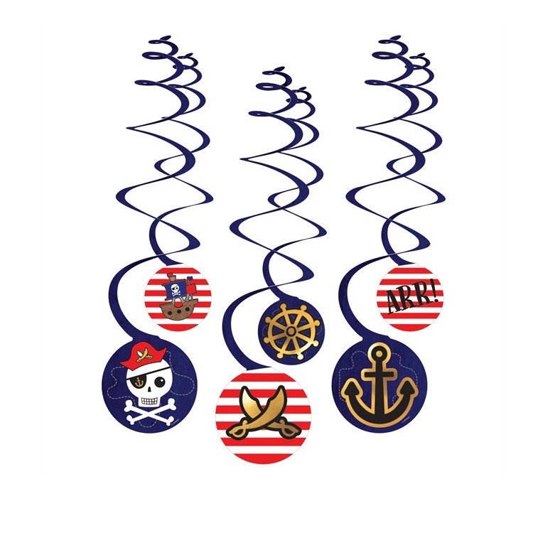 Decoração de suspender temática com 6 unidades de 13cm com espirais de 40cm,