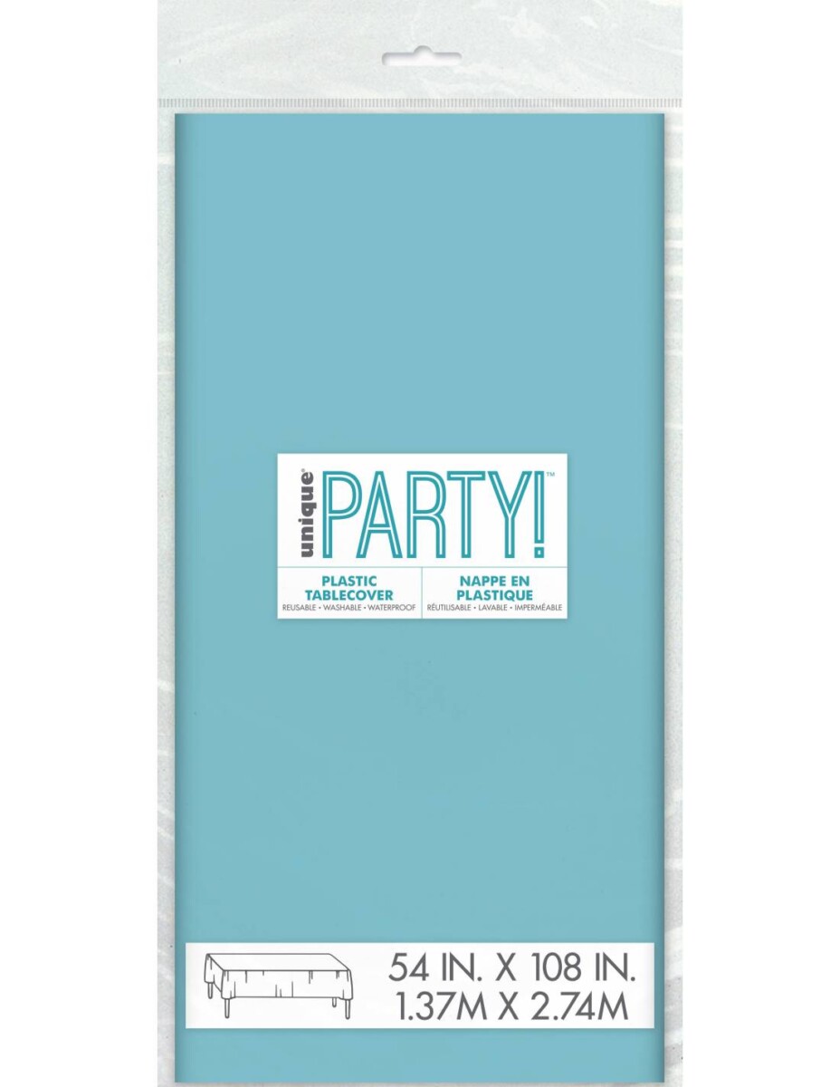 Toalha de mesa quadrada de plástico azul (54 pol. x 108 pol.)