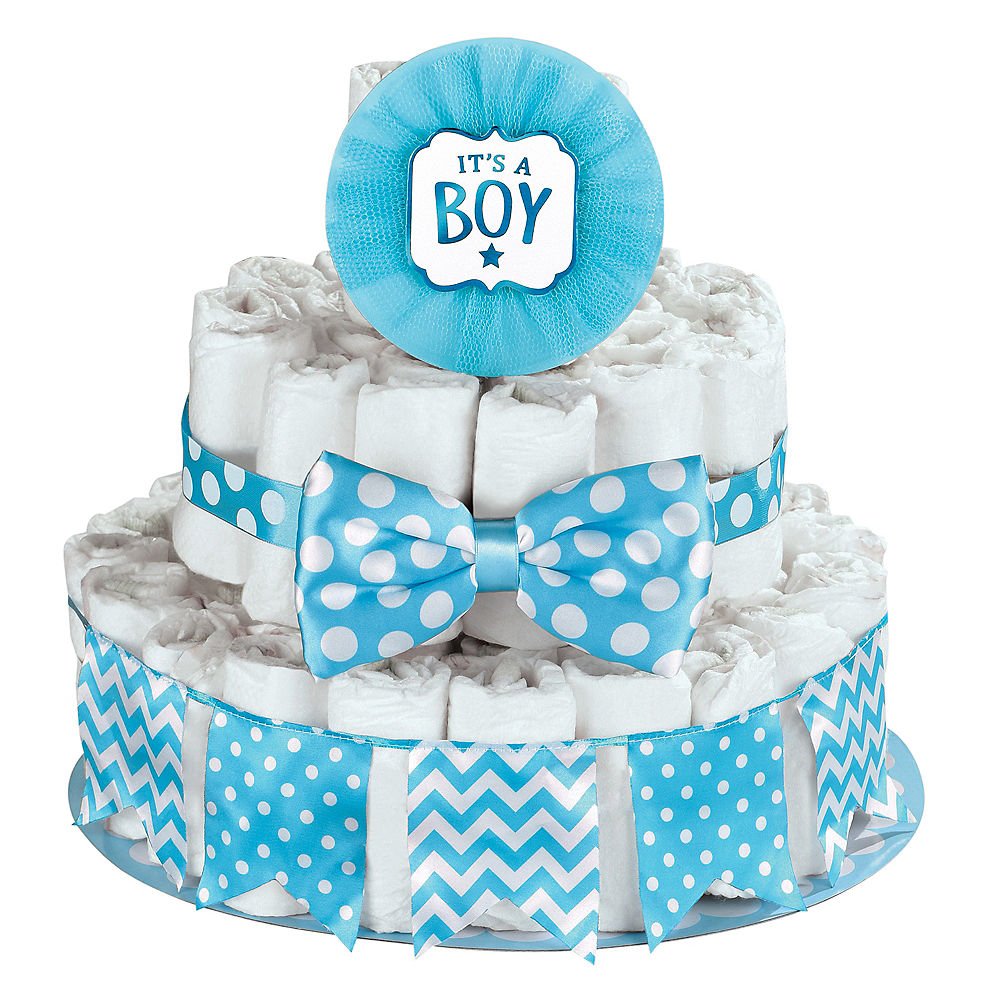 Kit Bolo de fraldas Baby Shower para menino. Contém: 1 base 34cm, 3 peças decorativas em tecido/tulle. NÃO contém fraldas,