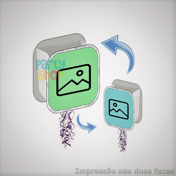 Pinhata de puxar de aproximadamente 45cm x 30 cm (AxL) com duas faces impressas, vendida sem recheio, recheio opcional disponivel na loja,